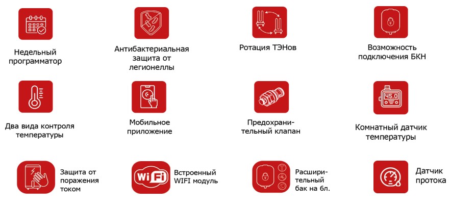 Защита от перегрева котла: ТЭНы котла автоматически отключаются при достижении температуры теплоносителя 110°С.