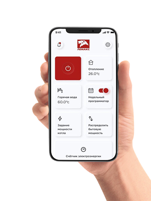 Встроенный Wi-fi модуль для удаленного мониторинга и управления показателями котла и системы отопления с помощью мобильного приложения.
