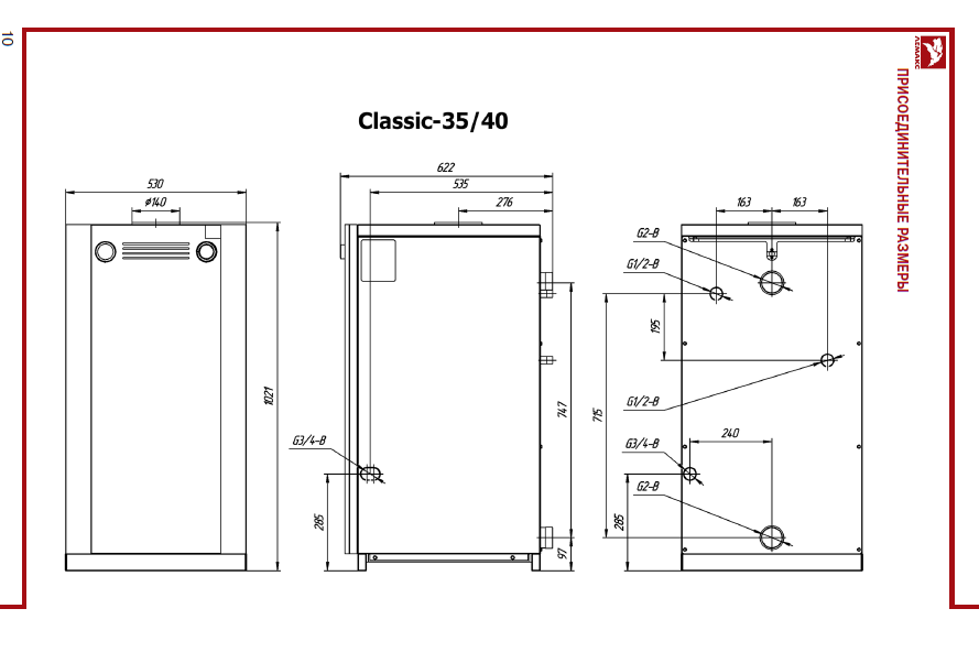 Котел серии Classic подходит для замены котлов «Лемакс» серии КСГ-д без изменения присоединительных размеров системы отопления