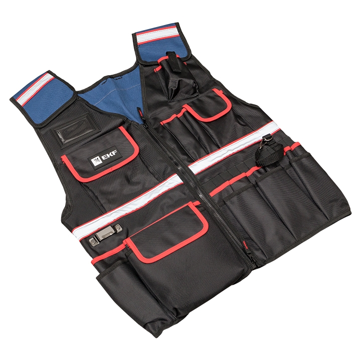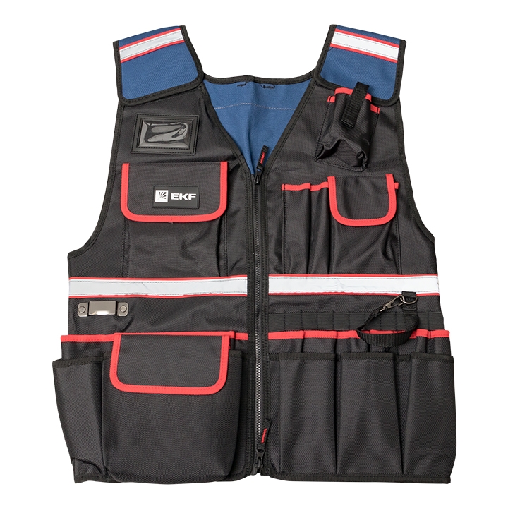 Универсальный регулируемый жилет монтажника С-22 EKF обеспечивает удобный доступ к инструменту и повышает носимую нагрузку монтажника за счет равномерного распределения инструмента по карманам жилета. Спинка жилета выполнена их денима- прочного натурального хлопкового материала. Работать в таком жилете значительно легче, особенно в жаркую погоду. Карман выполнены из материала EVA, отличающегося повышенной прочностью и износостойкостью. Хорошо держит форму, не протирается. Удобен для хранения расходных материалов. Возможность индивидуальной подгонки по талии и по высоте. Можно носить поверх теплой одежды. Дополнительная прошивка мест, несущих основную весовую нагрузку. Предусмотрена специальная петля для переноски жилета с инструментом а также для самоспасения.